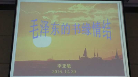 六点五十分,整个国际学术报告厅早已是座无虚席,数百名师生端坐静听,敬待嘉宾莅临。晚上七点,讲学正式开始。李亚敏教授以“毛泽东书缘情结”为题,从毛泽东的读书故事、毛泽东的荐书轶事、毛泽东的编书往事、毛泽东的著书大事等四个方面详细介绍了毛泽东作为一代伟人与书结下的不解之缘。毛泽东是伟大的无产阶级革命家、政治家、军事家、战略家、理论家、书法家和诗人,其之所以能集众家之所长,与其酷爱读书且读有所得、得而能用、用能生巧密不可分。李教授以引人入胜的故事,精到而独具慧眼的点评,通过介绍毛泽东“读书、荐书、编书、著书”的情况,使聆听者在充分了解毛泽东书缘知识,回味毛泽东经典故事的同时,深刻认识到读书学习的重要性,要珍惜读书岁月,抓紧学习时光,掌握读书方法,把握读书要点,不断激发学习学习再学习的热情。讲座过程中,李亚敏教授以渊博的学识,丰富的知识,独到的见解和富于感染力的语言,博得了计科系师生的阵阵掌声。
