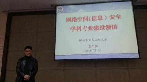 李亚敏教授系中国人民解放军信息工程大学信息安全保障系主任,长期人事信息安全保密领域的教学科研工作,在网络信息安全方面有着很深的造诣,是军队信息安全保密系统知名专家。当天上午,李教授还与计算机科学与技术系从事信息安全教学的老师们开展了一场“网络空间(信息)安全学科专业建设漫谈”。李教授就网络与信息安全的基本内涵、国内外形势及热点问题、学科专业建设的基本问题、人才培养目标、主干课程、师资队伍、教材建设、实验环境、教学平台建设、科研项目申报等问题与老师们进行了广泛深入的交流。李教授还就网络与信息安全专业申报问题进行“支招”,介绍了国家学科专业目录设置情况、申报程序和要点以及关键环节。表示今后将与我系在教学科研、人才培养、师资队伍等方面开展合作给予支持,包括网络空间安全形势、网络空间学科内涵、网络空间安全学科研究内容与方向、网络空间安全学科的理论与方法基础、信息安全专业规范等。李教授还对我院信息安全专业建设问题提出了中肯的建议。