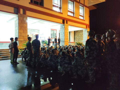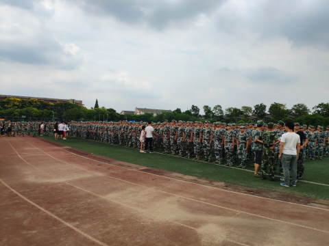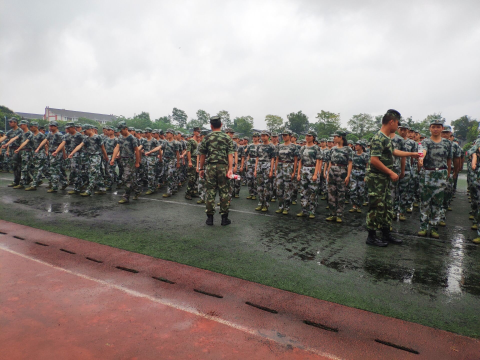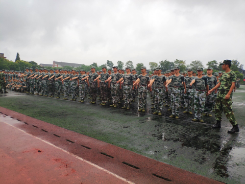 古人云“古之立大事者,不惟有超世之才,亦必有坚忍不拔之志”。孩子们冒着下雨的天气,身着迷彩短袖在训练场上严格听从着教官的命令,几千学子就算雨再大他们也坚持屹立在训练场上,真可谓是军训期间亮丽的风景线啊!
