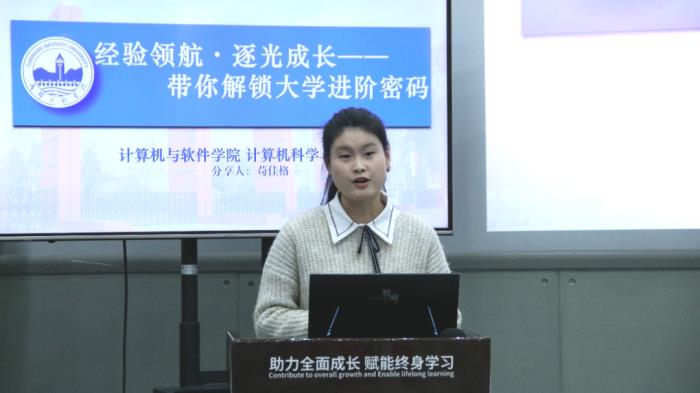 总结环节,苟佳格同学以 “精勤博学,学以致用” 寄语在场学子,强调本次分享的经验不是一次性的知识灌输,而是可复制的成长 “密码”,鼓励同学们主动探索,解锁属于自己的大学进阶之路,成为未来的领航者。