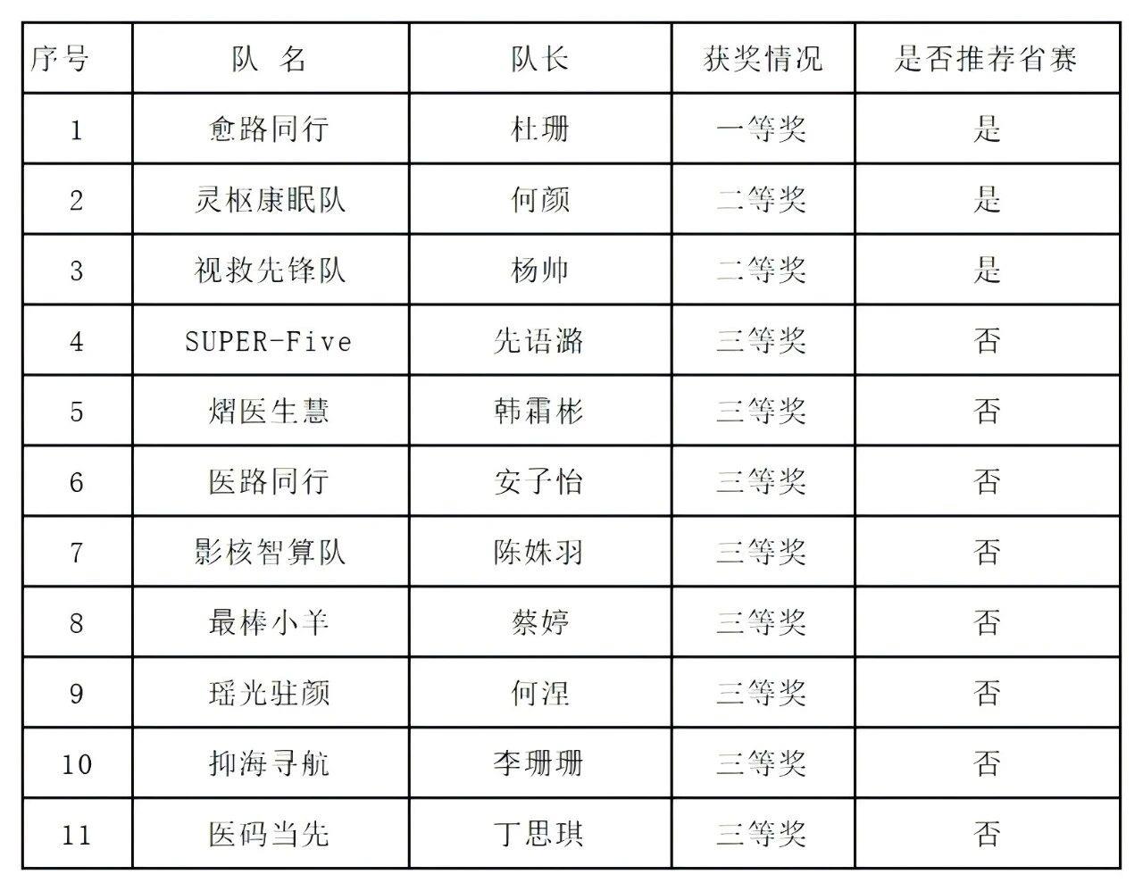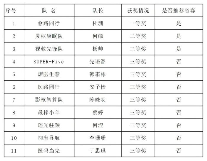 成都东软学院校内选拔赛获奖名单智能医学算法挑战赛