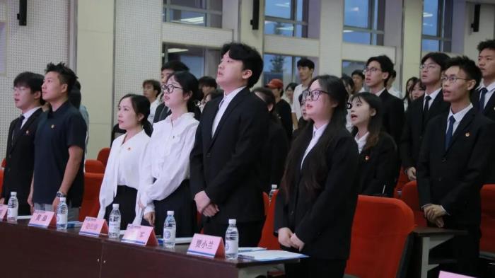 伴随着庄严激昂的中国共产主义青年团团歌,大会正式拉开帷幕。全体参会人员起立合唱,青春的旋律中满含责任与初心,彰显着学院青年昂扬向上的精神风貌。