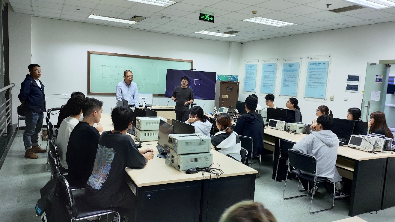 在我校C3实验中心3楼智能感知实验室的活动现场,首先由计算机科学与技术系主任秦海玉老师对公司副总经理夏天等一行4人表示了热烈欢迎。秦海玉主任表示希望借助本次的校企协同育人的创新实践活动,由成都粤嵌工程师现场演示嵌入式开发板实操,将智能嵌入式控制、传感器数据采集等抽象概念转化为可视化的实践案例,有效弥补课堂理论教学的局限性,拓展同学们的技术视野。