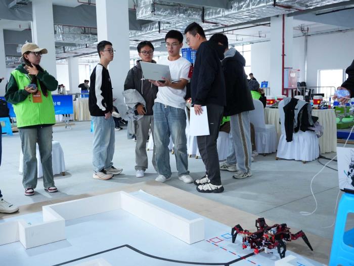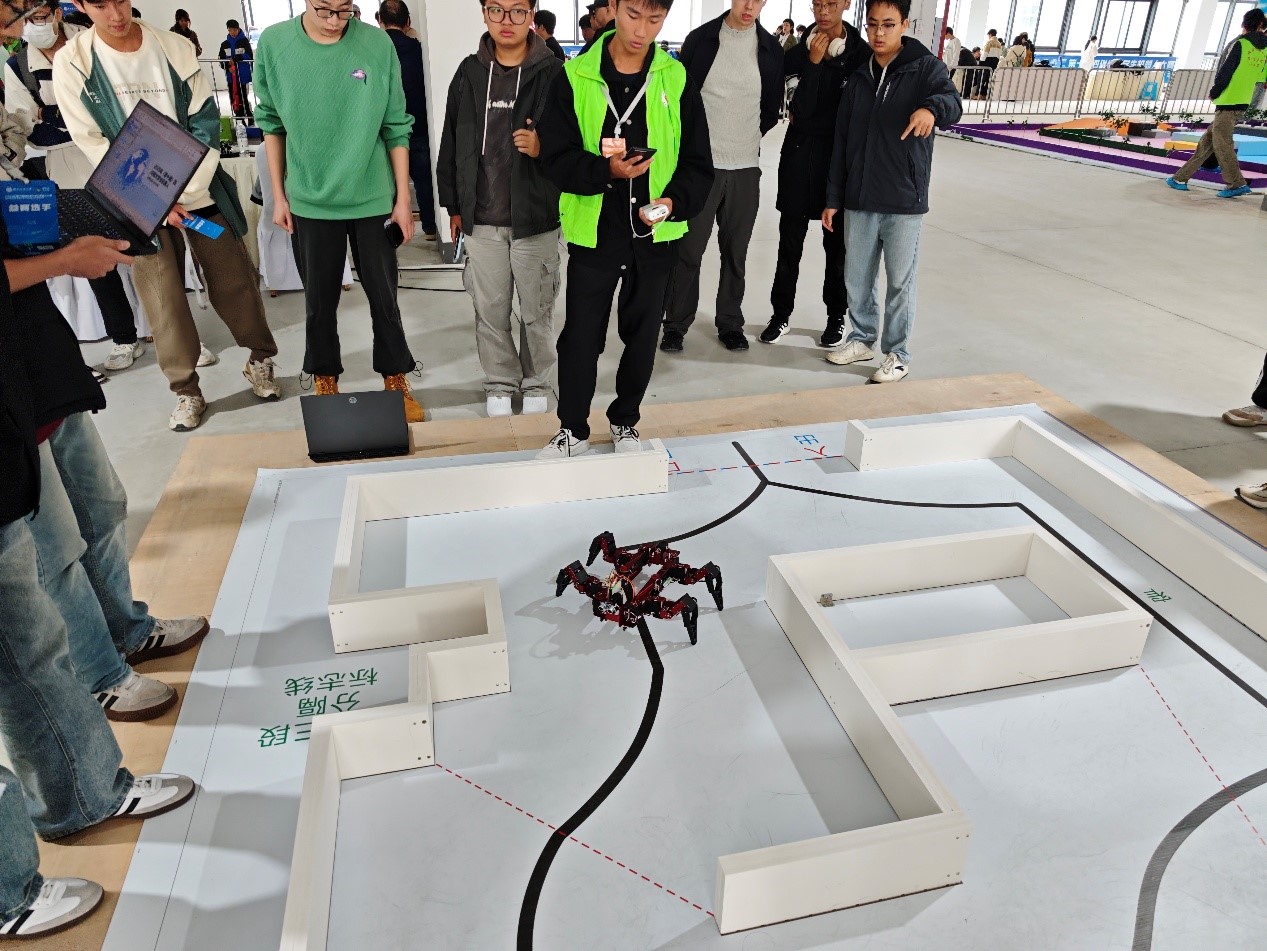 我校参赛团队的突破,离不开计算机与软件学院物联网工程系智能可穿戴实验室搭建的专项培训平台。自备赛启动以来,实验室每晚九点准时开启专项培训,这一坚持贯穿了整个备赛周期。对于刚踏入大学校园的大一新生而言,这段 “深夜培训时光” 成为他们快速成长的关键:从最初对机器人技术的懵懂探索,到熟练掌握硬件搭建、软件调试的核心技能;从面对复杂赛道的手足无措,到能独立设计任务解决方案 —— 每晚九点,实验室的灯光下,他们围坐在一起讨论方案、调试程序,常常在解决完一个技术难题后,才发现已临近深夜。指导教师全程陪伴指导,学长学姐倾囊相授经验,而这群大一新生更用 “绝不掉队” 的韧性,克服了基础薄弱、时间紧张的双重挑战,将课堂理论与实践深度融合,针对不同赛道的技术难点反复打磨。