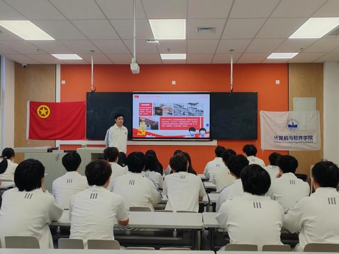 此次主题团日活动紧扣纪念中国人民抗日战争暨世界反法西斯战争胜利80周年,深入学习贯彻习近平总书记关于“铭记历史、缅怀先烈、以史为鉴、面向未来”的重要精神,引导团员青年从历史中汲取奋进力量,厚植爱国情怀,筑牢理想信念。活动中,团员集中观看阅兵盛典等影像。整齐的方阵、先进的装备,生动展现国家发展成就与国防力量,让大家深刻感受到和平来之不易、强国必须自强。围绕“新时代青年如何传承抗战精神与阅兵精神”,同学们展开热烈讨论,一致表示要将爱国情、强国志融入学习实践,珍惜时代、奋发有为。最后,团支书通过互动提问,引导大家思考历史启示与青春责任,并强调要牢记“国家兴亡,匹夫有责”,以实际行动践行“强国有我”的使命担当,为实现中华民族伟大复兴贡献青春力量。