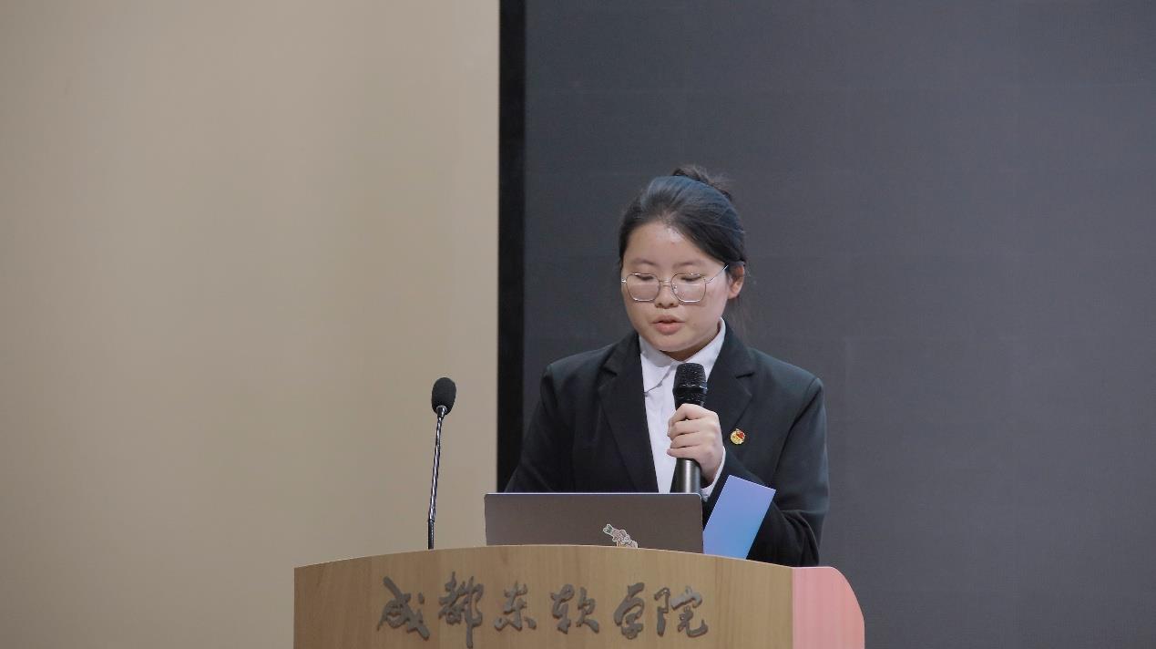 学院团委秘书长舒愉歡同学宣读团校规章制度,细化了培训期间的纪律要求与考核标准,明确了学员在日常学习、考勤管理等方面的具体规范,同时号召全体学员严格遵守各项规定,以高度的自律意识投入学习,切实确保培训学习质量。