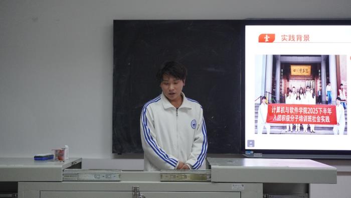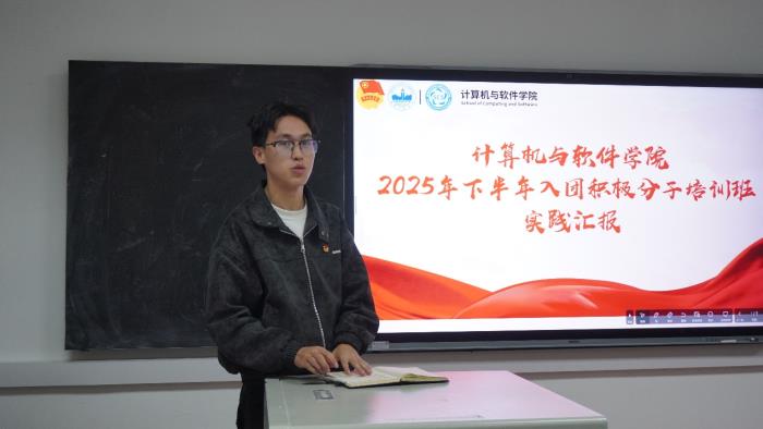 为检验入团积极分子的理论学习成效,推动理论与实践相结合,进一步提升青年学子的责任意识与担当精神。近日,计算机与软件学院在A5-104教室举办了2025年下半年入团积极分子培训班第四堂课——实践汇报活动。