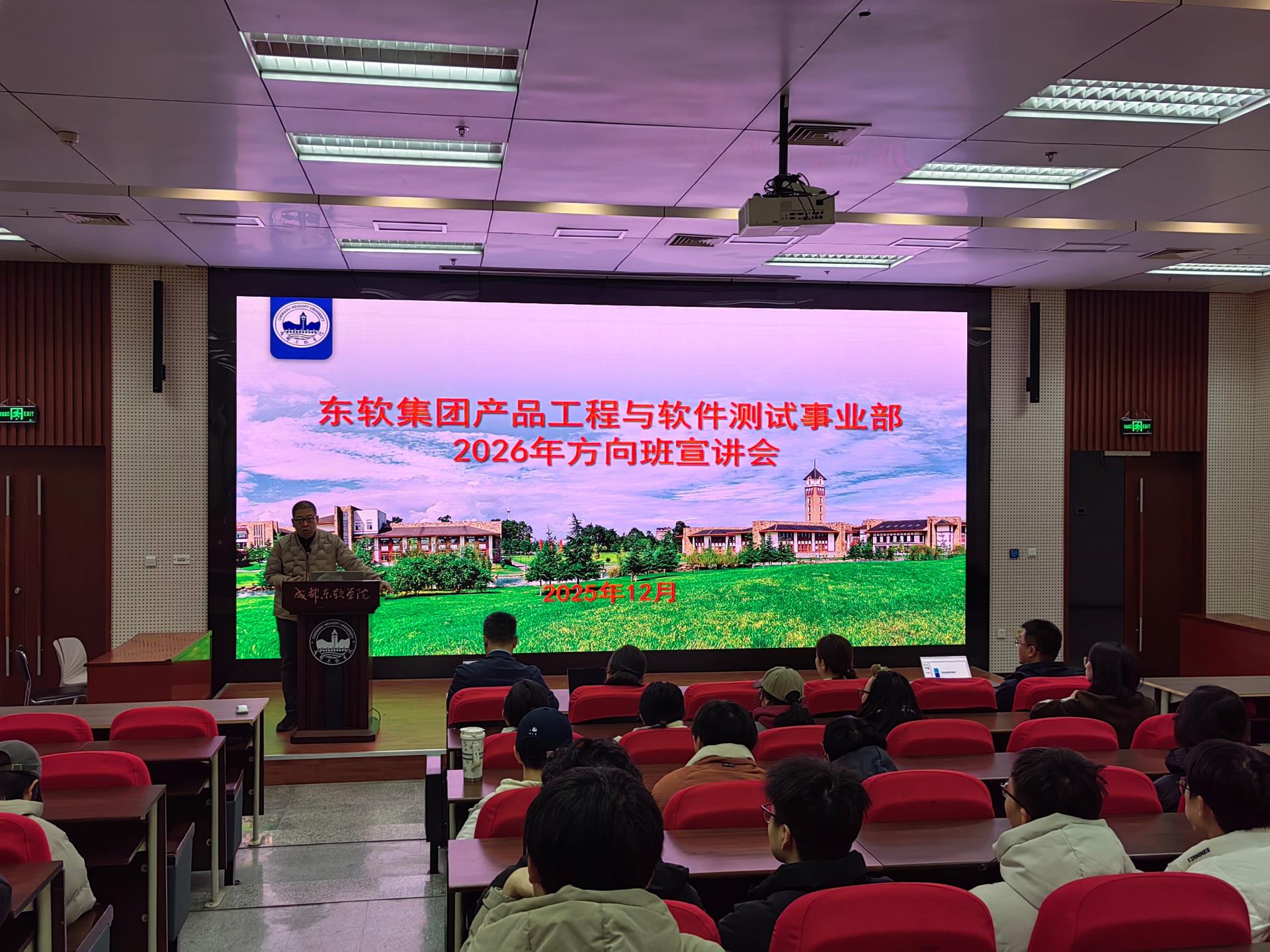 12月26日,东软集团产品工程与测试事业部(PEVVD)走进成都东软学院,面向计算机与软件学院、智能科学与工程学院及外国语学院日语专业的广大学子,隆重举办了软件测试定制班与嵌入式软件开发定制班宣讲会。本次活动旨在深化校企合作,精准对接产业需求,为学生提供从理论学习到职业实践的一站式成长通道。
