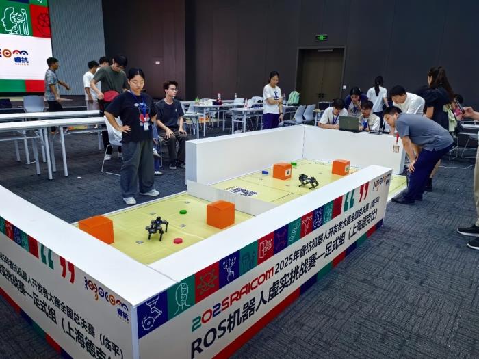 8月17日-19日,2025睿抗机器人开发者大赛(RAICOM)总决赛(二)在杭州临平国家卓越工程师实践基地举办。其中的ROS机器人虚实挑战赛足式机器狗赛道比拼热烈展开角逐,我校参赛团队凭借精心编写的控制程序,让足式机器狗在赛场上完成了一系列精准动作,展现了出色的编程能力与团队协作精神。