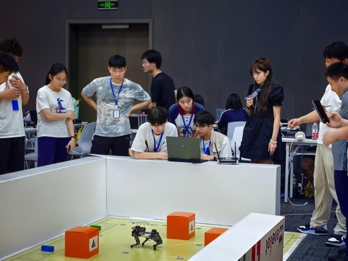 “编写程序的过程就像在给机器狗‘注入灵魂’,看着它按照我们的逻辑在赛场上奔跑,特别有成就感。”团队成员说道。此次参赛不仅让大家在实践中提升了编程技能,更深刻体会到了团队协作的重要性。