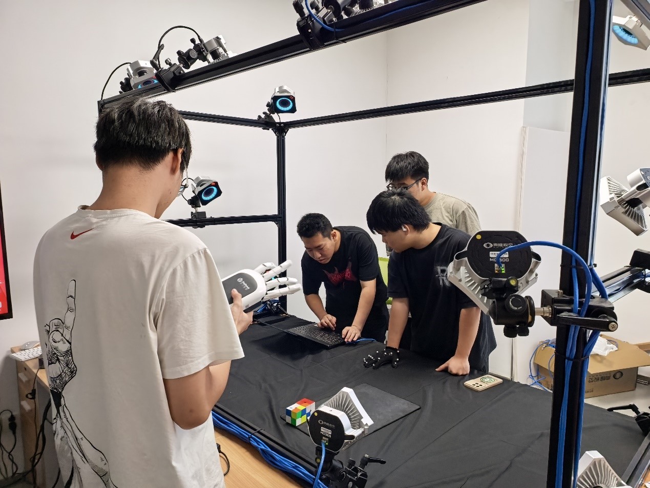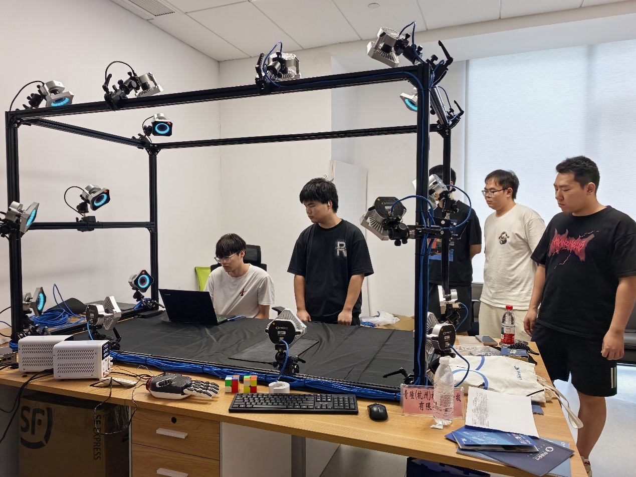 具身智能光学动捕挑战赛项于上午9点正式开赛,赛事采用红外光学动作捕捉系统,分成精准控制和协同控制两个任务项目。在精准控制项目中,参赛队伍需完成从视觉识别、数据传输、动捕遥操作、数据采集、推理运算到灵巧手精准控制的完整流程。在协同控制项目中,参赛队伍需完成从目标识别、数据采集、路径规划、动捕定位、智能体控制到无人机精准降落的完整流程。