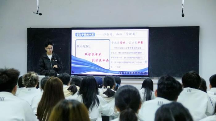培训中,吴培仓以“踵事增华、三省吾身、砥身砺行”为主线,深入剖析学生干部的职责定位与成长路径。他强调,学生干部的本质是服务者,应充分发挥思想引领、班风建设和信息沟通的桥梁作用,以扎实的能力素养履行责任担当。