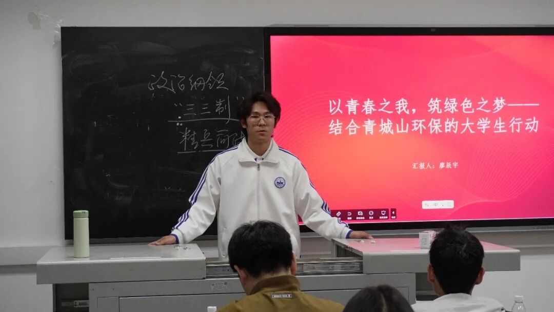 活动在庄重氛围中拉开序幕,全体学员肃立齐唱《光荣啊,中国共青团》,展现出新时代青年积极向上、信念坚定的精神风貌。实践成果展示环节,各小组依次上台汇报,内容涵盖红色精神传承、绿色青城建设、校园诈骗防范、社区志愿服务等领域,全面呈现了学员们的实践成长。其中,第三小组以“弘扬劳动精神,争当时代先锋”为主题,通过实践案例、感悟分享和影像记录,诠释劳动精神内涵,展现青年担当,赢得现场热烈掌声。