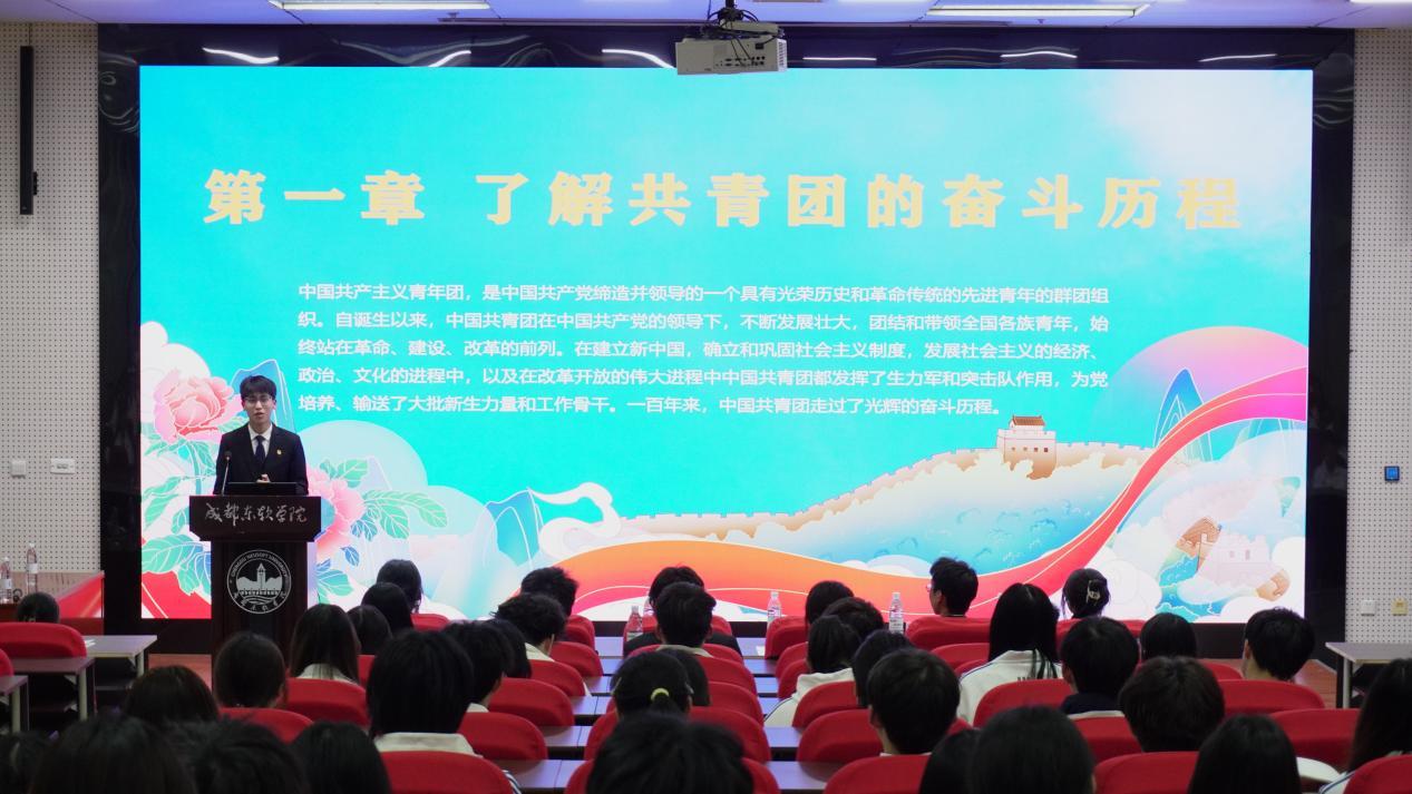 授课环节,计算机软件学院团委副书记吴培仓围绕新时代青年发展的重要历程展开细致讲解,先深入阐释中国共产主义青年团的本质,让学员清晰认识到共青团作为先进青年的群团组织、党的忠实助手和可靠后备军的核心定位;详细拆解团徽、团旗的构成要素与象征意义,从图案设计、色彩内涵到使用规范逐一说明,帮助学员牢记团的标识准则;同时讲述了共青团成立的历史原因,回顾团的光辉历程与重要发展节点,带领学员感悟共青团紧跟党走、服务青年的初心使命。授课内容深入浅出、贴合青年认知,让全体学员对共青团有了更全面、更深刻的理解。