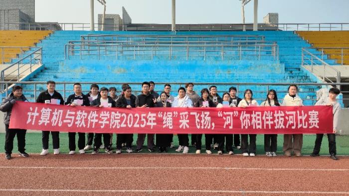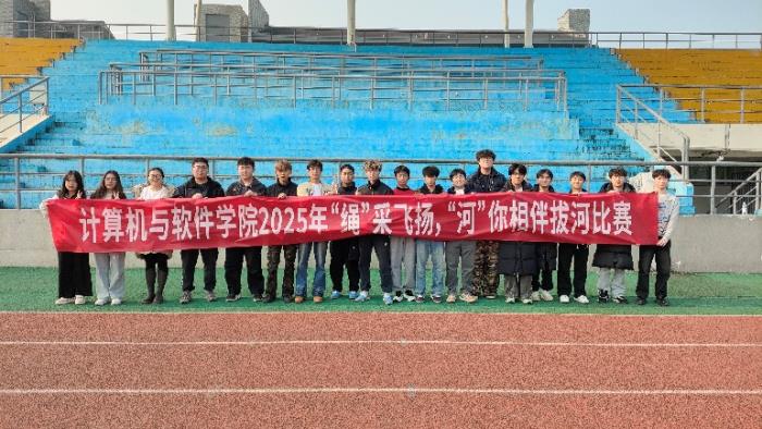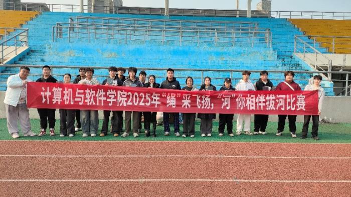 拔河比赛为丰富校园文化生活,增强学生体质,凝聚团队向心力,培养顽强拼搏的优良作风,12月16日中午,计算机与软件学院 2025 年“绳”采飞扬,“河”你相伴拔河比赛在学校田径场热烈举行。来自本学院的同学们组成5支参赛队伍同台竞技,以绳为桥,以力为证,在呐喊与拼搏中上演了一场场精彩绝伦的力量对决,用热血与坚持书写青春华章。