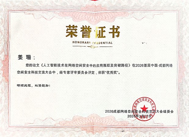 作为深耕网络空间安全领域人才培养与科研创新的高校,成都东软学院积极参与大会各项筹备与交流环节。在大会前期的论文征集活动中,我校网络空间安全系教师踊跃投稿,选送的论文凭借扎实的科研功底、贴合教育行业实际的研究视角与落地性成果,在众多参评作品中脱颖而出。经高校专家与行业资深人士组成的评审组,从原创性、实用性、行业价值三大维度严格评选,我校四位教师的4篇论文均获评优秀论文,其中刘亮老师的论文荣获二等奖,杨波、刘庆老师的论文荣获三等奖,姜珊老师的论文荣获优秀奖,丰硕的成果充分彰显了我校在网络空间安全与密码应用领域的科研积淀与实践探索能力。这份荣誉不仅是对四位获奖教师科研工作的专业肯定,更是行业对我校网络空间安全学科建设、科研创新工作与人才培养质量的高度认可。