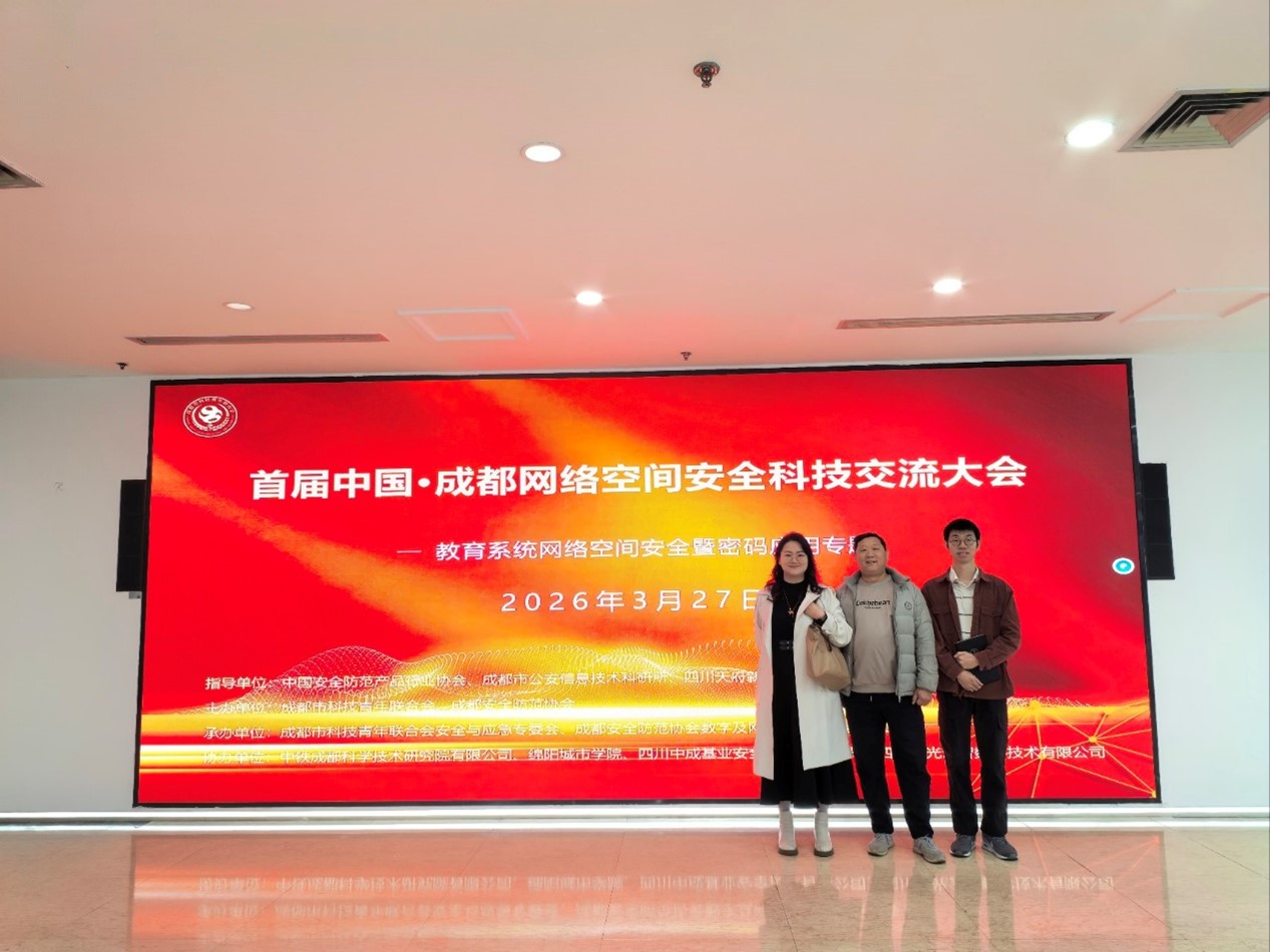 2026年3月27日,首届中国・成都网络空间安全科技交流大会——教育系统网络空间安全暨密码应用专题在成都市科技会堂成功举办。本次大会由成都市科技青年联合会、成都安全防范协会主办,汇聚政产学研用各方力量,围绕教育系统网络安全发展策略、前沿技术落地、密码应用实践等核心议题展开深度研讨,为筑牢教育领域网络安全防线凝聚智慧与共识。成都东软学院作为学术支持单位受邀参会,网络空间安全系主任谭飞、副主任姜珊、专任教师李宇涵代表学校出席本次大会,我校教师在大会论文评选中表现亮眼,斩获多个奖项,展现了学校在该领域的科研实力与实践成果。